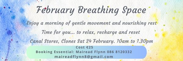 February Breathing Space -Saturday 24th mflynnm Events February 21, 2024April 3, 2024 1 Minute Time for you – to enjoy ease, vitality and connection! Share this: Click to share on X (Opens in new window) X Click to share on Facebook (Opens in new window) Facebook Click to share on LinkedIn (Opens in new window) LinkedIn Click to share on WhatsApp (Opens in new window) WhatsApp Click to email a link to a friend (Opens in new window) Email Like Loading... Related Published by mflynnm Teacher of Yoga and Mindfulness, Stress Management Therapist, Somatic Experiencing Practitioner, Gestalt Practitioner View all posts by mflynnm Published February 21, 2024April 3, 2024