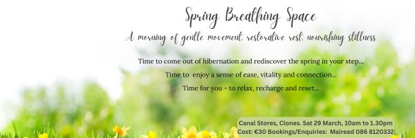 Bookings / Enquiries: Mairead 086 8120332 or mairead@breathingspace.ie